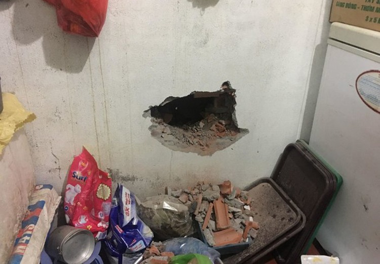 Hàng xóm đục tường vào căn nhà có ba bà cháu. Ảnh: Nguyễn Định