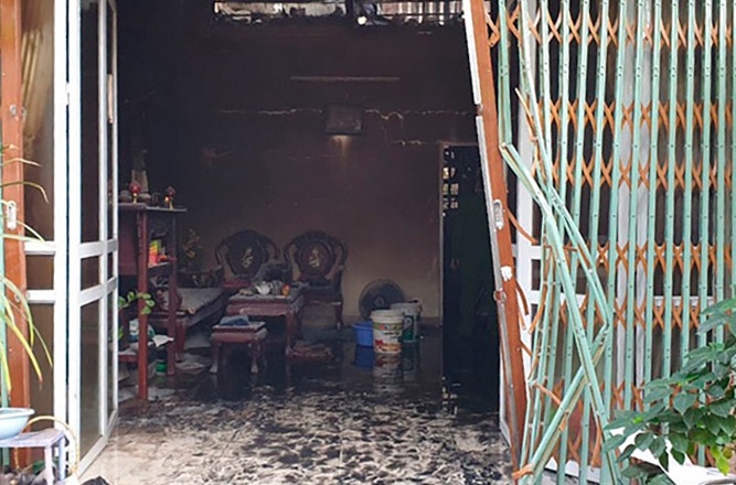 Sáng hôm nay khi hai xe cứu thương chở thi thể ba bà cháu rời đi, bên trong căn nhà rộng chừng 40 m2 vừa xảy ra hoả hoạn, cảnh sát phong toả hiện trường từ xa để bắt đầu khám nghiệm.