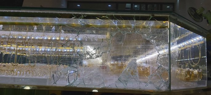 Kẻ bịt mặt cầm búa đập vỡ tủ kính và trộm vàng tháo chạy. Hắn đã lợi dụng lúc cả gia đình chủ tiệm vàng mải mê xem trận bóng đá U22 giữa Việt Nam - Indonesia.