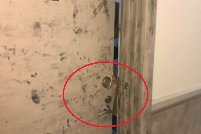 Cánh cửa căn hộ của cặp đôi Trung Quốc bị cảnh sát phá vỡ