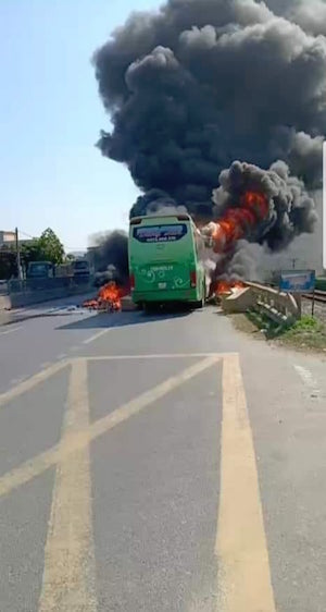 Trên quốc lộ 1A, đoạn Cầu Cừ, huyện Hà Trung, Thanh Hóa ~13h ngày 05/12/2019: Hiện trường vụ cháy xe khách giường nằm 45 chỗ, biển số 12B-00514 của nhà xe Dũng Lan tuyến Bắc Nam