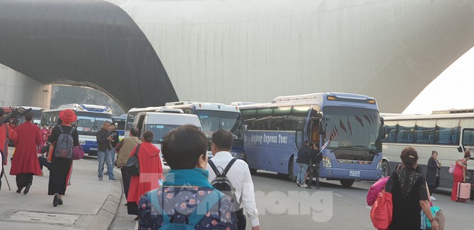 Phía trước sân cung cá heo, gần 20 chiếc xe 45 chỗ đậu kín một khoảng sân. Theo một số người dân sống cạnh khu vực, họ không biết sự kiện này tổ chức với mục đích gì nhưng chỉ tập trung toàn người Trung Quốc.