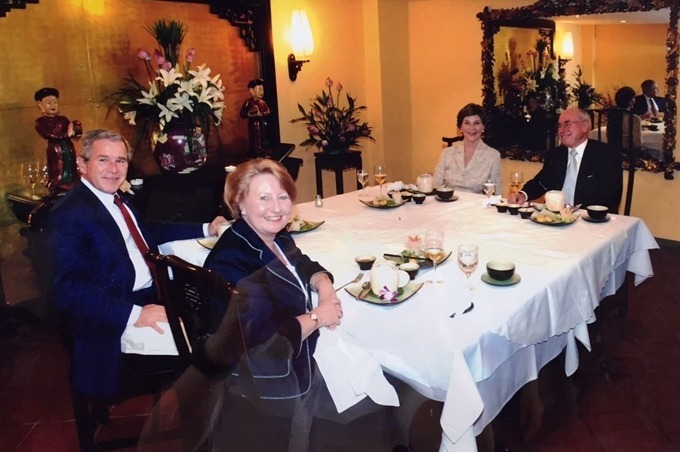 Vợ chồng Tổng thống George W. Bush dùng bữa tối cùng vợ chồng Thủ tướng Australia John Howard. Ảnh: Nhà hàng Tib.