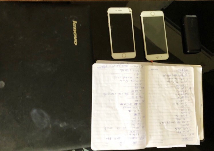 Khám xét nơi ở của các đối tượng, công an phát hiện 8 máy tính xách tay cùng nhiều sổ ghi nợ, chứng minh nhân dân và gần 200 triệu đồng tiền mặt.