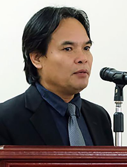 Hiệu trưởng cho rằng việc hình ảnh ông xuất hiện trong tác phẩm là tai họa với ông. "Tôi nói với thầy hướng dẫn, học viên làm vậy là hại tôi. Nhiều người nghĩ thầy Sửu đề cao bản thân nhưng tôi không kém nhận thức đến vậy", ông Sửu nói.Phó hiệu trưởng - PGS. TS Ngô Tuấn Phong - kiêm hướng dẫn học viên Nguyễn Xuân Vinh cho biết ban đầu bức phù điêu không được chọn trưng bày. Tuy nhiên, nhiều người trong hội đồng chấm thi đánh giá cao và cho phép treo lên. Hội đồng gồm hiệu trưởng Lê Văn Sửu là chủ tịch, ông Ngô Tuấn Phong, PGS, họa sĩ Trần Huy Oánh, giảng viên Lương Ngọc Báo, Nguyễn Xuân Thành... Ông Phong nói: "Việc hiệu trưởng xuất hiện trong phù điêu hoàn toàn bình thường. Chân dung đó không phải hình tượng cá nhân mà đại diện cho giảng viên trong trường. Ngoài ra, phù điêu còn có hình ảnh tác giả cùng bạn bè người Việt, Lào của anh".