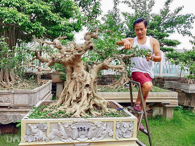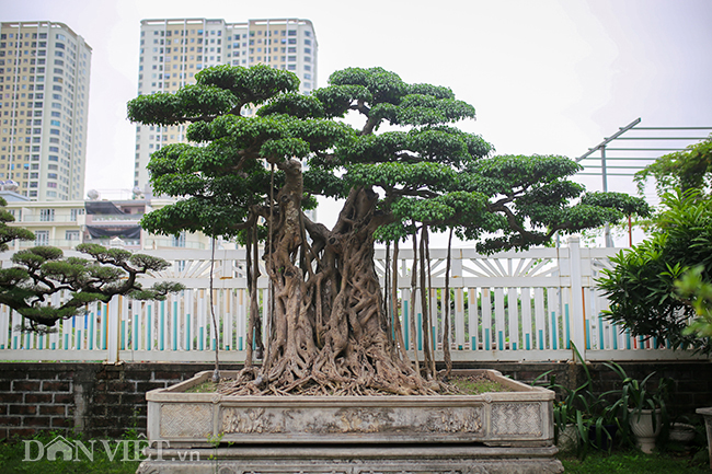 Ngoài ra còn nhiều tác phẩm "đỉnh" không kém như cây sanh quý với thế "Huynh đệ tương cố". Cây có 2 thân nhưng bện vào nhau tạo thành một khối có bề ngang hơn 1m, chiều cao 2m8.
