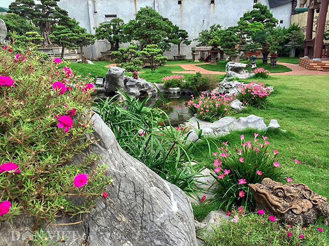 Theo đánh giá của những người có chuyên môn trong giới chơi cây cảnh, khu vườn hội tụ đủ cả 4 thành tố: Mộc, thạch, ngư, cầm (cây, đá, cá, chim).