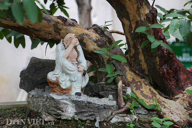 Nhiều cây trong vườn được trang trí thêm tượng Quan Công, La Hán, ông bụt,...Những bức tượng được đặt khéo léo kết hợp với thế cây kỳ vĩ tạo thành tiểu cảnh đẹp thơ mộng như trong tranh.