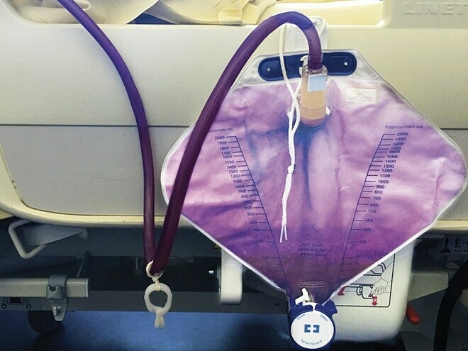 Túi nước tiểu của bệnh nhân. Ảnh: New England Journal of Medicine