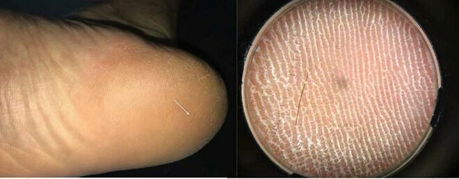 Người đàn ông 35 tuổi, Brazil, tới viện cấp cứu với cơn đau ở gót chân phải, khi bước đi cơn đau càng dữ dội. Sau nhiều lần kiểm tra, bác sĩ phát hiện một sợi tóc mắc bên trong bàn chân. Anh được chẩn đoán mắc cutaneous pili migrans - tình trạng hiếm gặp do một sợi tóc, hoặc mảnh tóc bị mắc vào bên dưới bề mặt da. Trong 60 năm nay mới có 26 bệnh nhân mắc căn bệnh này.