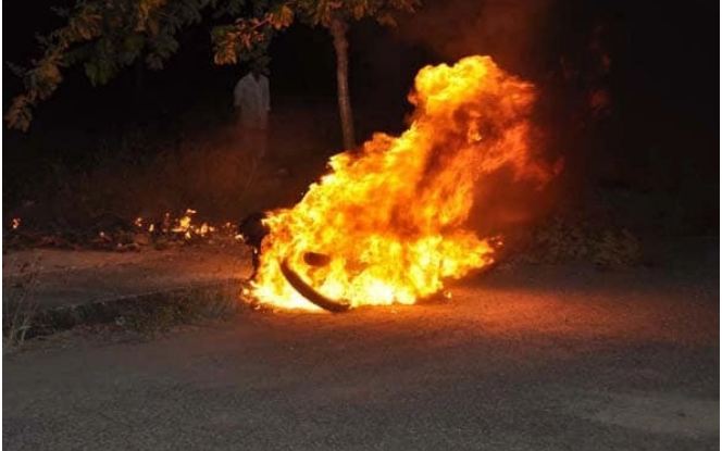Chiếc xe máy bốc cháy ngùn ngùn sau sự việc.