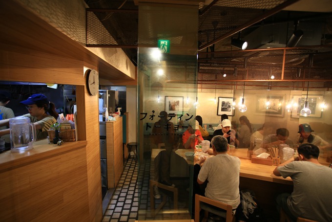 Không gian nằm dưới tầng hầm nên trần khá thấp, diện tích vừa phải được giữ thông thoáng, sạch sẽ theo đúng kiểu của người Nhật. Vừa bước vào đây, khách Việt Nam sẽ cảm thấy gần gũi khi chủ quán chọn bật những bản nhạc trẻ của Việt Nam. Bếp được bố trí gọn gàng ở một góc với không gian mở nên khách có thể quan sát được các bước chuẩn bị của đầu bếp. Khu vực dành cho khách gồm một bàn lớn đặt ở giữa và dãy bàn nhìn thẳng vào tường. Đa số khách tới ăn là du khách hoặc người Việt Nam sống tại Tokyo, có khoảng 4-5 người Nhật.