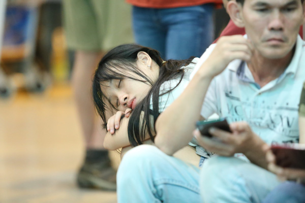 Lượng người tập trung quá đông nên các băng ghế trong nhà ga hầu như không có chỗ trống, nhiều người phải ngồi vạ vật ở hành lang, một số ngủ gục trong lúc ngồi chờ.