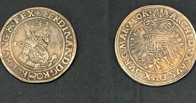 Những đồng thaler đời đầu in hình Joachim và sư tử, nhưng sau đó chúng lần lượt được khắc hình các vị vua trị vì để thể hiện lòng tôn trọng. Ảnh: Eliot Stein/BBC.