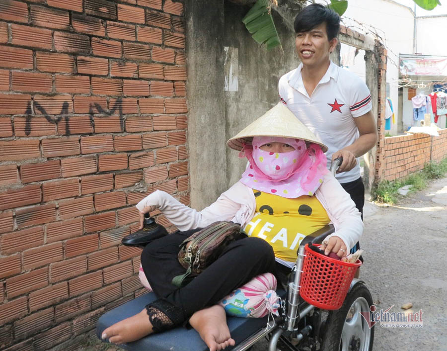 Để có nhiều thời gian chăm vợ, Trí nghỉ công việc thợ hàn thu nhập cao xin làm ở cửa hàng xe đạp điện gần chỗ ở. ‘Làm thợ hàn lương cao, nhưng phải đi nhiều nơi, giờ giấc không ổn định. Cô ấy ở nhà một mình, tôi không đành’, anh chồng quê Long An nói. Còn Diễm, hằng ngày đi bán vé số kiếm thêm thu nhập, phụ tiền ăn với chồng.