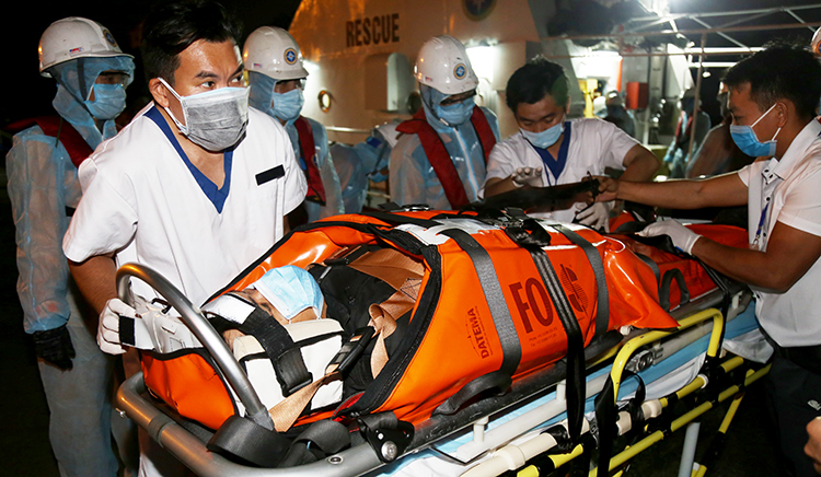 Ông Alfredo Cayabyab (43 tuổi, quốc tịch Philippines) có biểu hiện nôn ói, khó thở, có nguy cơ tử vong được tàu SAR27-01 đã đưa vào Nha Trang, tối 9/2.