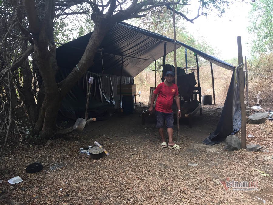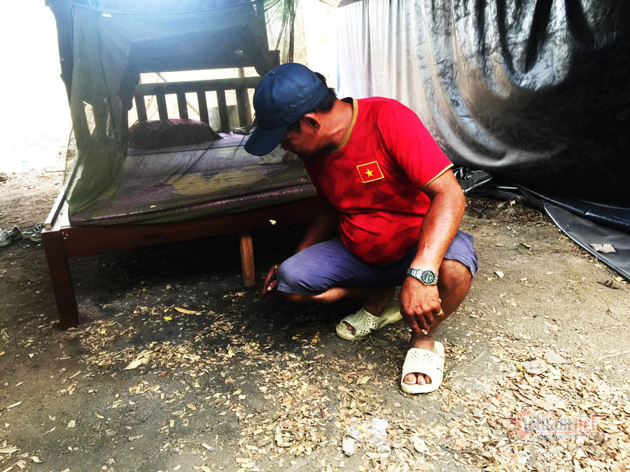 Ông mời chúng tôi vào lều. Nhà ông trước đây, vốn là một túp lều dưới tán cây rậm rạp. Bên trong, ngoài giường ngủ còn nhiều vật dụng và nhất là lủng lẳng nhiều tấm bằng khen được treo khắp nơi. Giờ đây, cũng là túp lều nhưng mới hơn, rộng hơn. Bên trong chỉ vỏn vẹn chiếc giường ngủ với mùng mền còn mới.