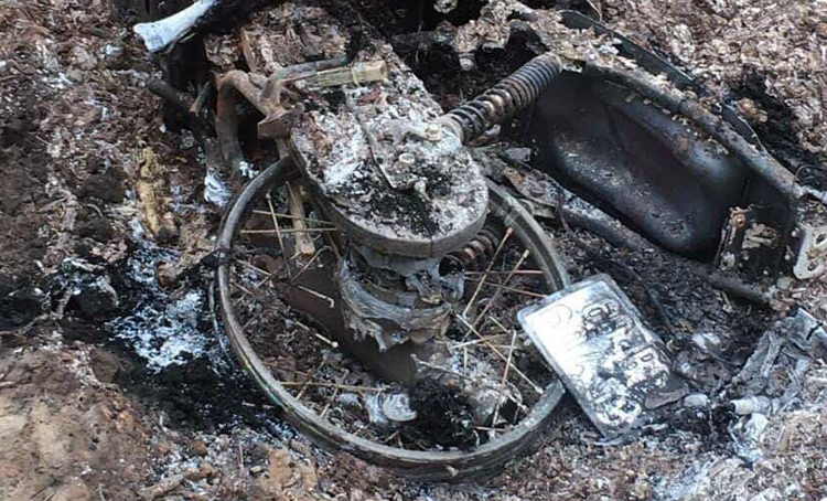 Chiếc xe máy cháy đen. Ảnh: Trường Nguyên.