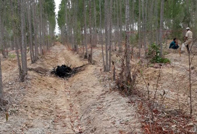 Thi thể cháy đen nằm trong rừng bạch đàn ở xã Sông Bình. Ảnh: Trường Nguyên.