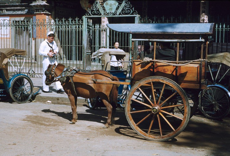 Xe ngựa kéo bên ngoài hội quán Ôn Lăng.