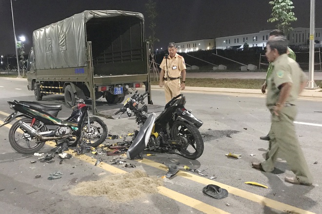 Tại hiện trường, hai xe máy bể nát. Nhóm thanh niên tụ tập đua xe bỏ lại nạn nhân tử vong và rời đi.