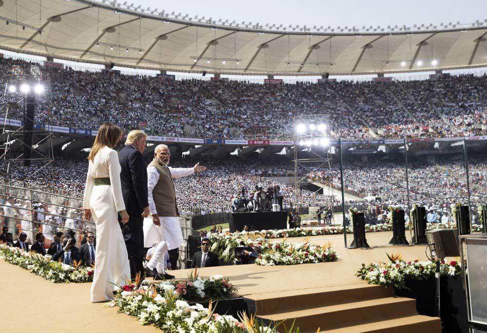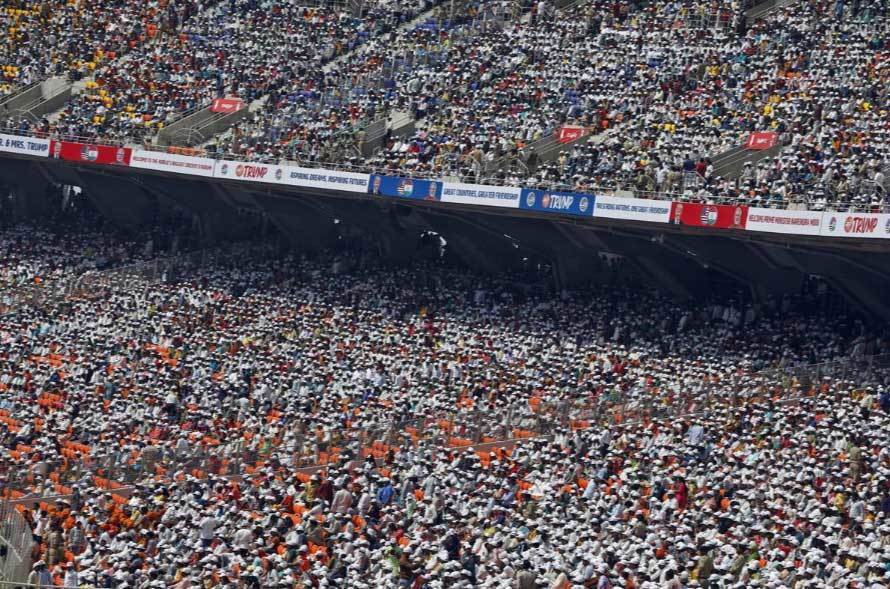 Ông Trump sau đó được tiếp đón tại một sân vận động 110.000 chỗ trong thành phố. Hàng vạn người Ấn Độ đã ngồi kín sân vận động criket lớn nhất thế giới.