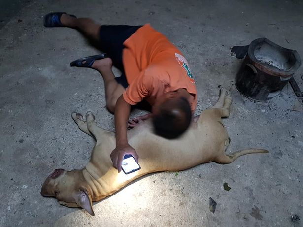 Những bức ảnh nhói lòng cho thấy chủ của Nong Horm, ông Suriyon Chanthakhet, 51 tuổi, nằm bên cạnh thú cưng của mình khi nó đang hấp hối với nhiều vết cắn quanh miệng.