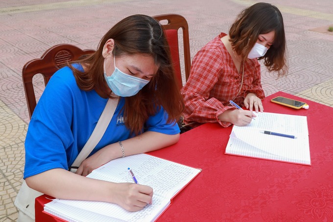 “Nơi mà khi khó khăn luôn giang rộng vòng tay chào đón, không bao giờ bỏ rơi chúng ta, đó chính là Tổ quốc. Đất khách quê người, khó khăn, vấp ngã không thể thoát ra khỏi là khi Tổ quốc giúp ta tìm ra con đường. 14 ngày trôi qua, có rất nhiều người đã cực nhọc chỉ để cho chúng tôi vượt qua cuộc cách ly này. Khi chúng tôi ngủ thì bộ đội dậy chuẩn bị thức ăn, những trưa nắng đẫm mồ hôi các chú vẫn bê cơm, bê nước. Tôi không biết phải làm gì ngoài thực hiện cách ly cho tốt. Cảm ơn vì tất cả, Việt Nam. Hãy cùng nhau vượt qua dịch bệnh này”, Lê Thị Quỳnh (áo đỏ) để lại những dòng lưu bút.