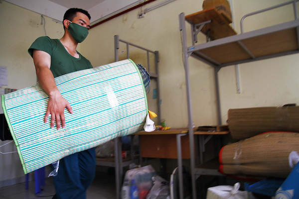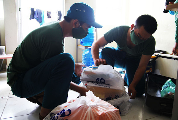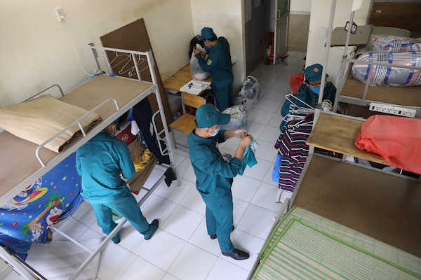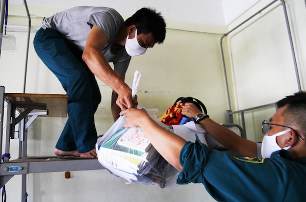 Đồ đạc mỗi phòng ở ký túc xá sẽ được đơn vị quân đội gom vào bọc hoặc đóng thùng