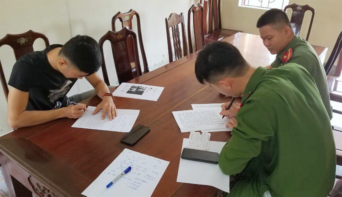 Hà (áo đen) làm việc với cảnh sát. Ảnh: Công an cung cấp