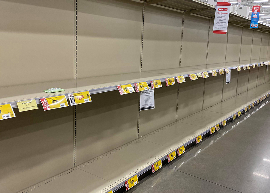 Các kệ hàng ở siêu thị Mỹ trống trơn. Ảnh: Nhân vật cung cấp.