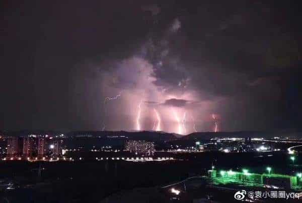 Đêm khuya 23/2, cả thành phố Trùng Khánh như bị đánh thức bởi sấm sét (Ảnh từ WeiBo)