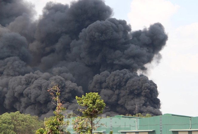 Ngọn lửa nhanh chóng bao trùm ra toàn bộ nhà xưởng. Nhận được tin báo, lực lượng cảnh sát phòng cháy chữa cháy TP Thuận An đã điều động khoảng 8 xe chữa cháy cùng hàng chục chiến sĩ xuống hiện trường dập lửa.