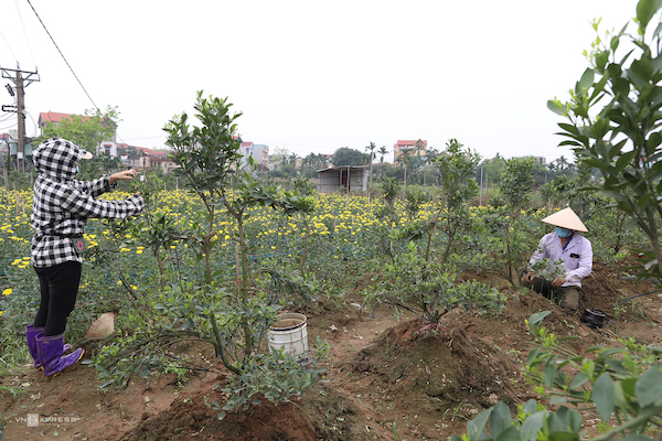 Một số gia đình có vườn cây trong thôn vẫn làm việc bình thường. Trồng hoa, cây cảnh là nghề của người dân Hạ Lôi.