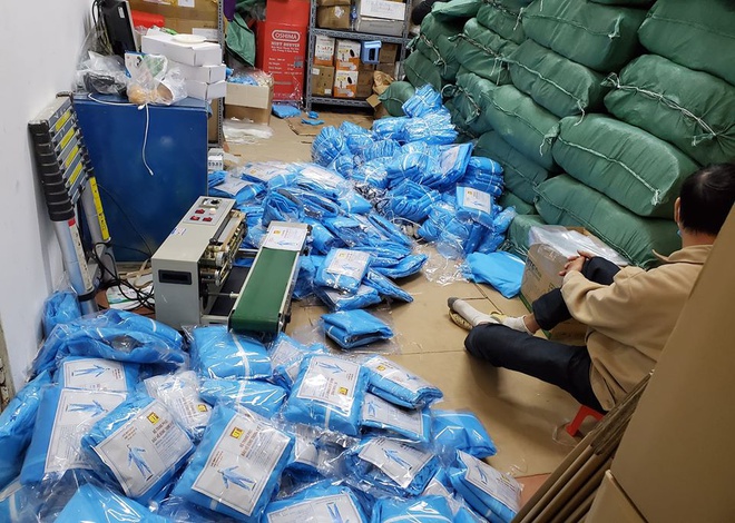 Tại cơ sở y tế Đức Anh trên phố Tây Sơn, Hà Nội, lực lượng chức năng phát hiện 3.247 bộ trang phục bảo hộ nghi bị làm giả. Bên cạnh đó, còn 2.760 bộ khác chưa dán nhãn.