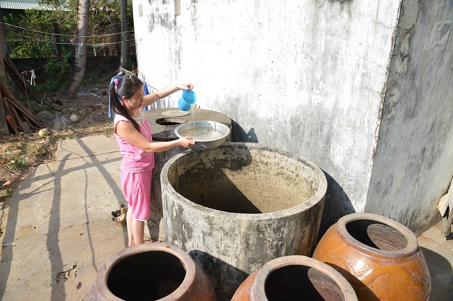Nhiều nông dân đã đào ao dự trữ nước ngọt từ sớm nên hiện nay vẫn còn nước ngọt để sử dụng.
