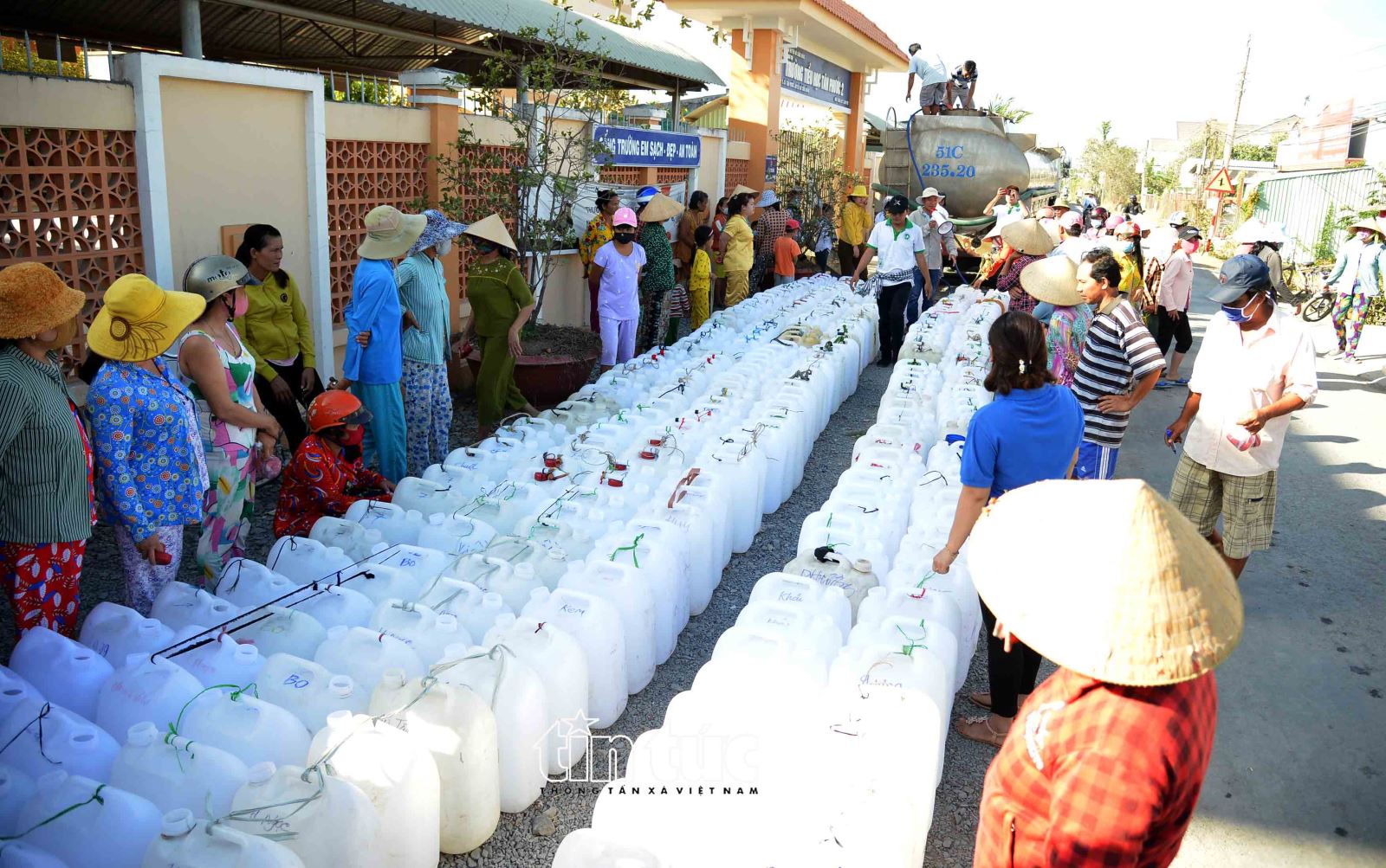 Gần 3.500 hộ với gần 18.000 nhân khẩu ở xã Tân Phước, huyện Gò Công Đông (Tiền Giang) đang thiếu nước sinh hoạt trầm trọng. Người dân phải dùng can nhựa, xếp hàng chờ lấy nước từ các xe nước ở TP Hồ Chí Minh mang về cứu trợ.