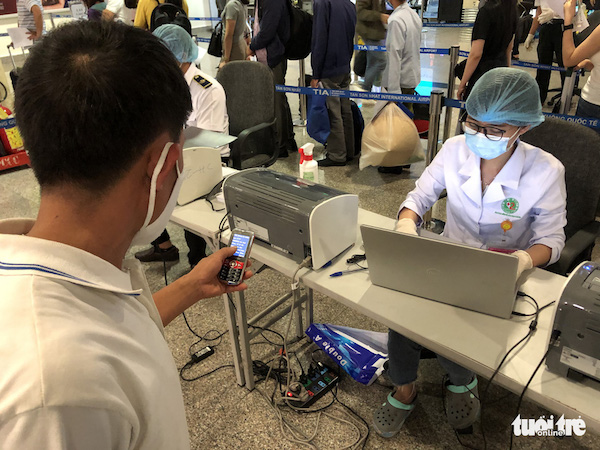 Không ít hành khách dùng điện thoại không phải smartphone nên phải nhờ người khác khai báo hộ thông tin y tế để làm thủ tục ở sân bay Nội Bài; khi đến Tân Sơn Nhất, phải khai báo lại nên bị lúng túng, thậm chí điện thoại hết pin nên không nhớ số, mất khá nhiều thời gian để làm thủ tục khai báo y tế, lấy mẫu xét nghiệm.