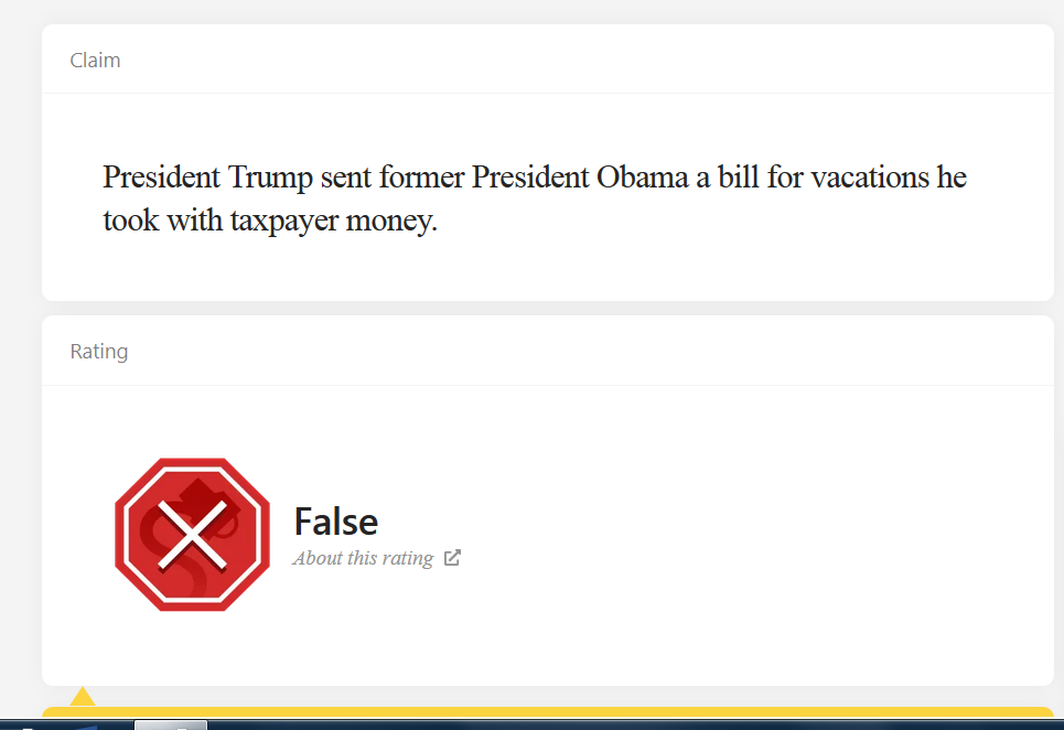 Tin tốt , đặc biệt là khi ngay cả Snopes cũng sẽ xác minh như vậy. Snopes (trang kiểm chứng tin) đã xác thực rằng Tổng thống Donald Trump đã gửi cho Obama một hóa đơn cho tất cả các kỳ nghỉ mà ông đã đi kể từ khi rời nhiệm sở ….