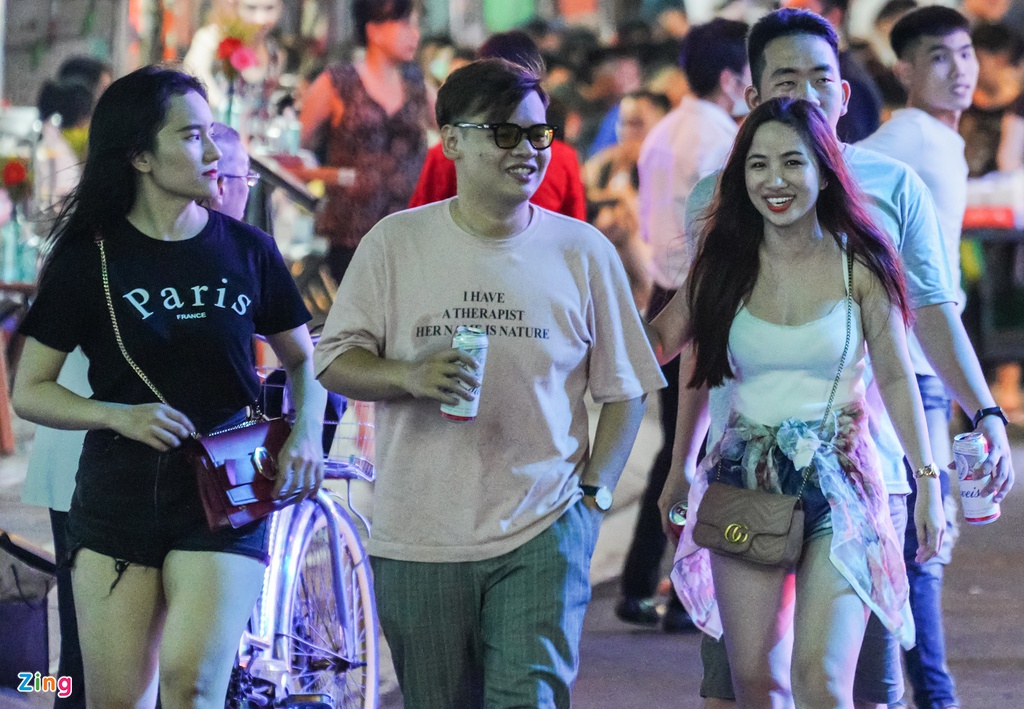 Nhóm bạn Vân Anh cho biết: "Đám bạn chúng tôi đang đi ăn sinh nhật cùng nhau, thấy phố Bùi Viện đông vui trở lại nên vào chơi, đã lâu lắm rồi mới cảm nhận lại được sự náo nhiệt về đêm như thế này".