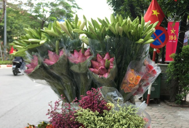 Không khó để bắt gặp những gánh hàng rong có bán sen lẫn quỳ trên các con phố Hà Nội thời gian này