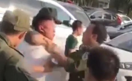 Trong đoạn clip ghi lại vụ việc, người đàn ông bị một nhân viên an ninh sân bay ghì cổ. Người này bất ngờ nhổ nước bọt vào mặt một nhân viên an ninh khác đứng đối diện khiến nhân viên này bực tức vung nắm đấm.