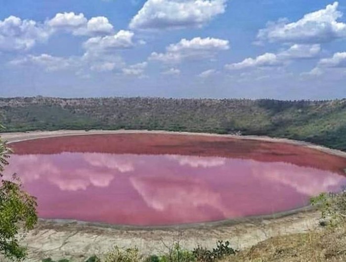Mới đây, nước trong hồ Lonar thuộc quận Buldhana, Maharashtra, Ấn Độ đã bất ngờ thay đổi từ màu xanh chuyển sang màu hồng chỉ sau một đêm