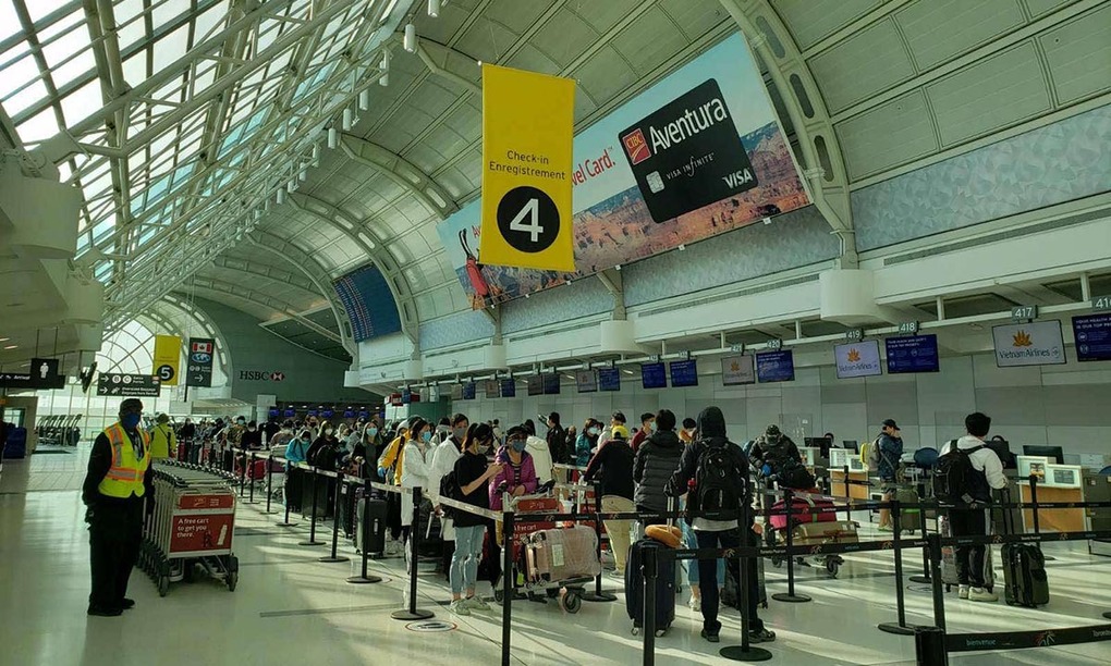 Các công dân Việt Nam chuẩn bị lên chuyến bay tại Toronto, Canada, hôm 15/6. Ảnh: Bộ Ngoại giao.