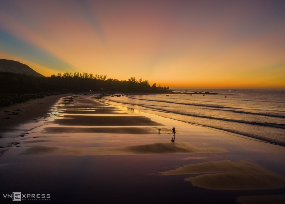 Tàu thuyền tấp nập neo đậu trên bãi biển Vinh Thanh, huyện Phú Vang, Thừa Thiên Huế. Tuy không quá nổi tiếng như Lăng Cô, biển Vinh Thanh mang sức hấp dẫn riêng với những con thuyền đánh cá, nằm chờ trên bãi cát trước chuyến ra khơi. Du khách tới đây còn cảm nhận được hương vị biển cả trên các ghe thuyền đầy cá mực trở về. Ảnh VNE.