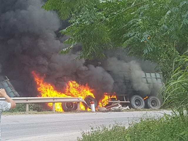 Old  Default Xe container bất ngờ lao vào vệ đường rồi bốc cháy, tài xế thập tử nhất sinh