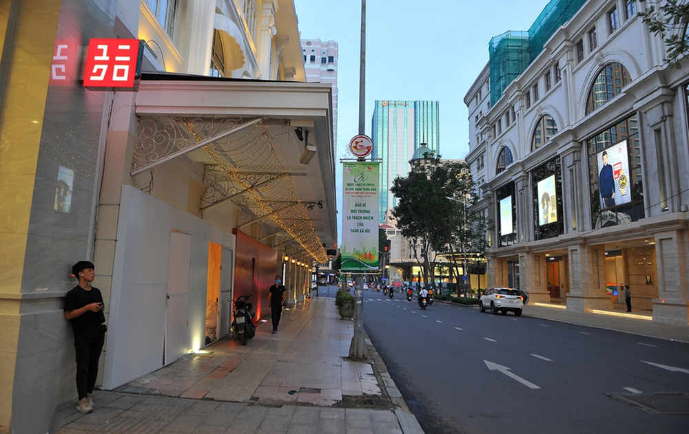 Cửa hàng Uniqlo nổi tiêng trên đường Đồng Khởi vắng vẻ dù vào giờ cao điểm từ 6-8 giờ tối. (Hình: Z.i.n.g)