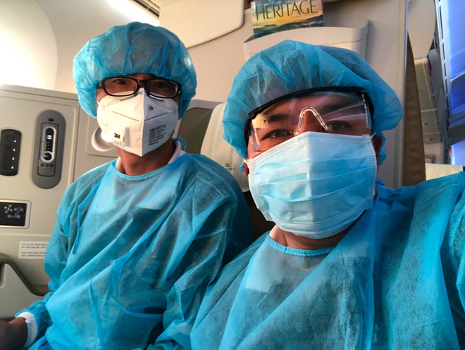 Bệnh nhân 91 phải thở oxy, dùng thuốc giảm đau trên chuyến bay về nước. Điều dưỡng và bác sĩ thay phiên nhau hỏi thăm tình trạng sức khỏe, đổi tư thế nằm cho bệnh nhân 91 trong 32 giờ trên máy bay