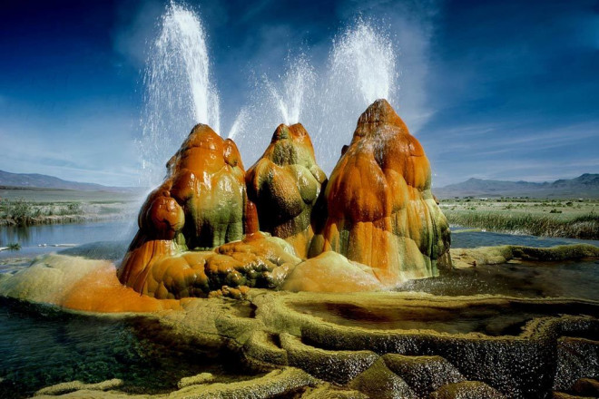 Mạch nước phun Fly Geyser tuyệt tác bí mật của vùng Nevada (Mỹ) cung cấp nước cho khoảng 30-40 ao nhỏ xung quanh và bao phủ diện tích khoảng 300m2.