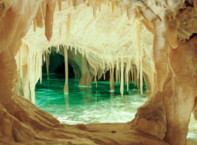 Hang động Obir Dripstone (Áo) với những thạch nhũ lâu năm và dòng nước trong xanh tạo khung cảnh tựa tiên cảnh.